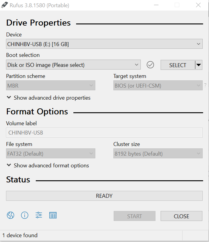 – Rufus 3.8 Portable là phiên bản không cần cài đặt, run luôn sau khi tải về